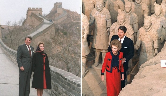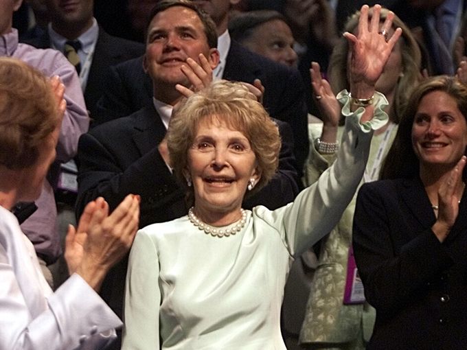 南希·里根生于1921年7月,上世紀40-50年代是名好萊塢演員,1952年與羅納德·里根成婚,1981年至1989年擔任美國第一夫人,1984年曾隨羅納德·里根訪華。羅納德·里根是美國最受歡迎的共和黨總統之一,1994年對外宣布患阿茲海默癥,2004年逝世。