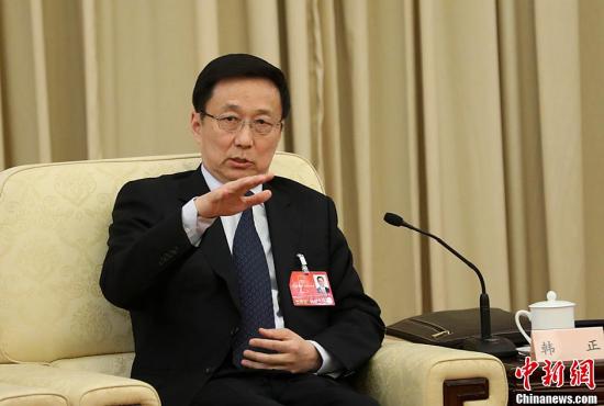 3月6日,出席十二屆全國人大四次會議的上海代表團舉行全體會議,審議政府工作報告并對中外媒體開放。上海市委書記韓正回答媒體提問。