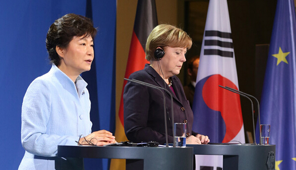 韩德首脑会晤后举行记者会。资料图