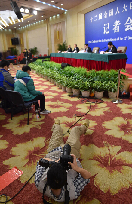 农业部部长韩长赋等就“转方式调结构 加快发展现代农业”答记者问3月7日,十二届全国人大四次会议新闻中心举行记者会,邀请农业部部长韩长赋、新闻发言人叶贞琴就“转方式调结构 加快发展现代农业”的相关问题回答中外记者的提问。这是记者会结束后,韩长赋准备离场。
