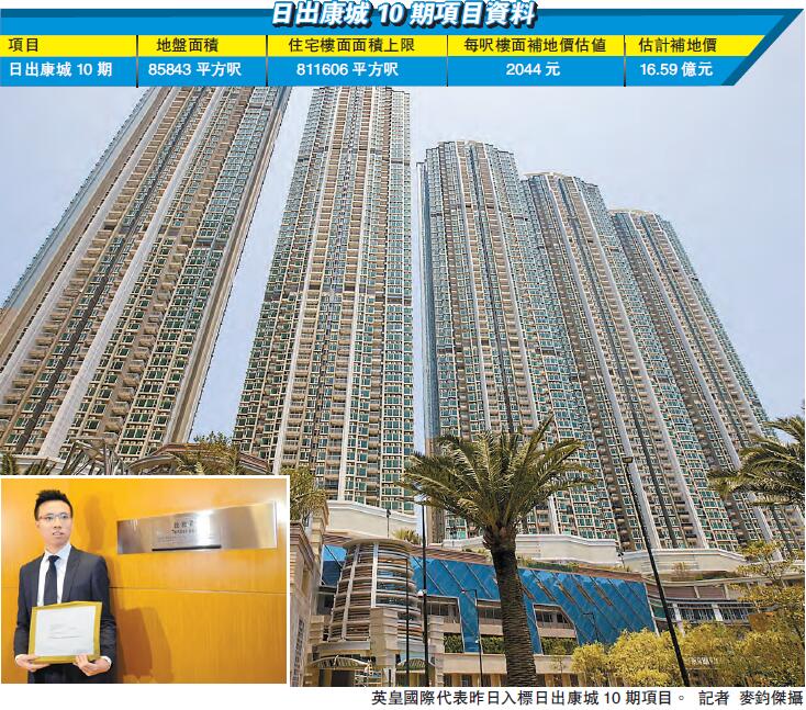 日出康城10期地皮位於日出康城的西南角位置,屬臨海地皮,占地約8.58萬平方尺,可建樓面約81.2萬平方尺,料可興建兩幢住宅項目,最多可提供1170單位,預期於2022年竣工。早前有市場消息指出,項目補地價16.59億元,每尺樓面地價為2044元,較去年底批出的第9期項目低約兩成,重返2014年3月推出的第4期項目水平(第4期每尺樓面補地價為2059元),而港鐵的分紅比例固定為兩成。
