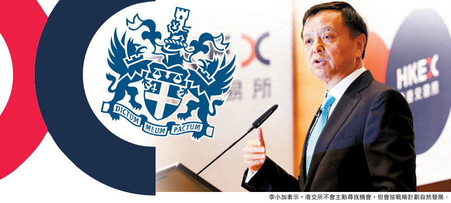 此前,港交所行政总裁李小加曾在业绩会上拒绝评论有关传闻,港交所发言人亦未就市场消息作回应。本港资深投资银行家温天纳认为,港交所成功收购伦交所「机会不大」,除收购价钱外,还涉及很多其他因素,包括政治考虑、欧盟区内金融安全等。
