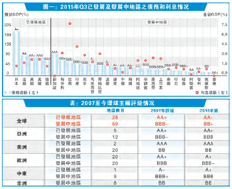 大家一直認為現時亞洲國家的財政情况已不能跟1997年亞洲金融危機時同日而語。無錯,看看圖一,截至2015年的債務占GDP都已知一二,例如現時已發展地區的債務占GDP約80%至90%,但新興市場普遍低於此水平。亞債危機?不像。