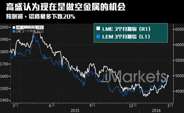 Jeffrey Currie等高盛分析師在3月7日的報告中表示,只要原材料價格上漲,都會促使更多供應涌入市場,使得任何漲勢都難以持續。高盛稱其維持對金價的看跌預期,稱鐵礦石的飆升勢頭可能曇花一現,重申原油將在每桶20-40美元區間波動。高盛還認為,當前是做空銅和鋁的好時機。