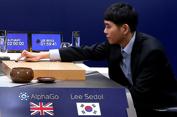 3月9日,韩国九段棋手李世石与“阿尔法围棋”对弈。
