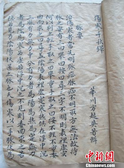 中新网北京3月9日电 在《中国医籍通考》中明确记载失传的清代名医方起英所著《千秋铎》的清代写本在隐匿200余年后,日前重现世间。