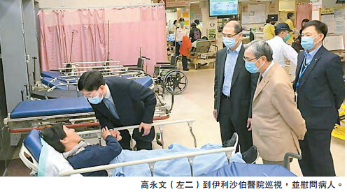 【香港商报网讯】记者冯仁乐报道:踏入流感高峰期,公立医院服务量增加,内科病房使用率爆满。食物及卫生局局长高永文昨日到伊利沙伯医院和威尔斯亲王医院视察后形容情况严峻,医院管理局已采取各种应变措施,包括在急症医院内尽量调动和加开病床,各医院联网会检视网内的康复医院能否腾出病床。