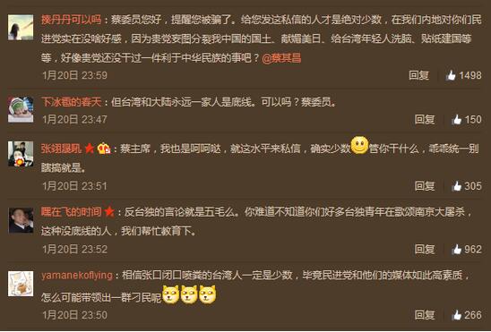 大陆网友抨击台独的爱国言论,在蔡其昌眼中却是“五毛”