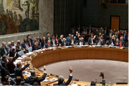 資料圖片:圖為2016年3月2日在位于紐約的聯合國總部拍攝的聯合國安理會會議現場。聯合國安理會2日一致通過決議,決定實施一系列制裁措施遏制朝鮮的核、導開發計劃,并呼吁恢復六方會談。新華社記者李木子攝