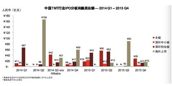 高建斌表示:“2015年下半年中國的IPO歷經暫停又重啟,上市熱潮遠不如上半年,預期2016年TMT IPO形勢會有所改善。境外已上市企業的私有化將會逐漸減少,同時中國TMT行業境外上市也會在短期內出現低潮。”