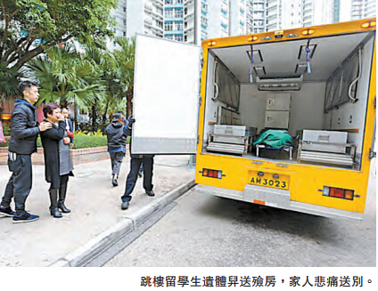 墮樓男子張×榮(20歲),據悉他早前到英國留學,但因眼疾問題,去年一度返港求醫,其后證實患上抑鬱症,本周初事主曾經覆診。他昨日原定約同表哥吃午飯,惟未有赴約。昨午1時許,海怡半島海韻閣一名姓麥街坊(62歲),發現一名男子從高處墮下倒臥上址平台,大驚報警。救護員到場證實男子當場死亡,由消防員協助將其遺體搬到地面,警員調查聯絡到其家屬,稍后再有2男1女親友落樓認尸,神情哀傷。警方在現場未有檢獲遺書,初步調查顯示事件無可疑。