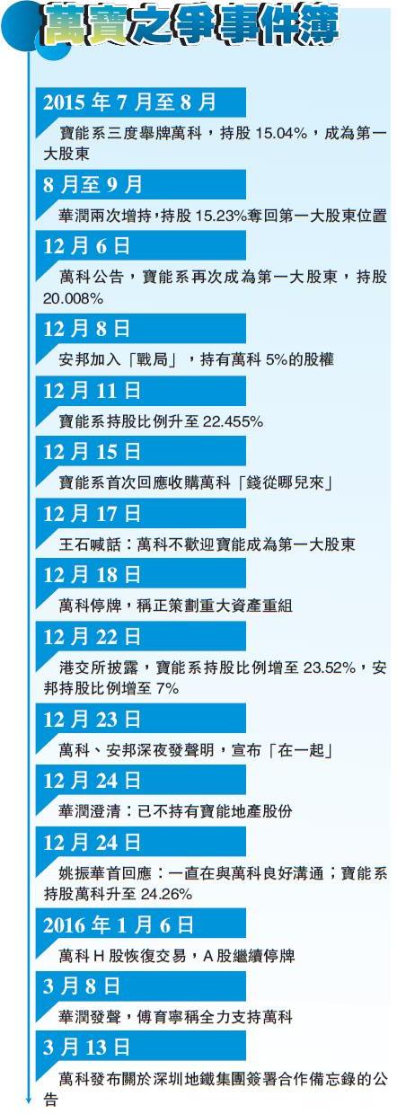 「從市場角度分析,某種程度上,萬科復牌才是管理層的一張底牌,它逼迫姚振華陣營對萬科深圳地鐵集團重組方案不能輕易實施否決權。」攸克地產稱。據知情人士表示,此番萬科引入深圳地鐵,預示著萬寶之爭大局已定。不過,萬科方面對此未有置評。
