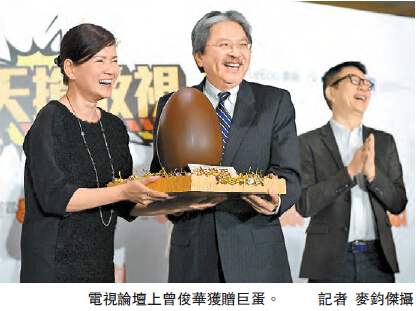 【香港商報網訊】記者李淇報道:亞洲電視不獲續牌后,將於下月1日正式告別免費電視界,但近年一批新興網絡電視正在火速冒起,香港媒體市場可謂面臨翻天覆地的變化。商業電臺昨日舉辦了一場「電視論壇」,邀請財政司司長曾俊華(財爺)及多個業界持份者探討如何推動香港電視電影行業發展。曾俊華表示,香港文化創意界人才輩出,政府會繼續致力推動文化創意產業,又將近年廣受網民歡迎的歌曲《喜氣洋洋》送給本港創意工業,因為這首歌已被二次創作多次,贊揚港人極具創意。