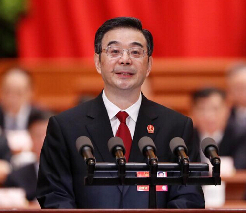 3月13日,十二屆全國人大四次會議在北京人民大會堂舉行第三次全體會議。最高人民法院院長周強作最高人民法院工作報告。中新社記者 劉震 攝