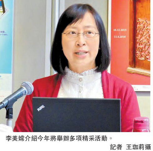 李美嫦於会上介绍了署方今年多项精采活动,包括今年5至7月於文化博物馆举行「他乡情韵:克劳德莫奈作品展」,展出多幅莫奈的名画;历史博物馆於6至8月举行「罗马海军及庞贝古城(暂名)」展览,展出罗马海军文物,如Nemi的战舰残骸、四具人类遗体倒模等,重现庞贝古城因维苏威火山爆发一夜覆没一刻,古人走难时的情况,亦有3D影片呈现古城在火山爆发前后约24小时的实况。