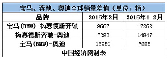 今年2月,寶馬以143419輛的銷量,從上月的第三躍至第一,榮獲2月單月銷冠,為其百年慶典獻上大禮。然而,論及前兩月累計銷量,寶馬卻以7262輛的微弱劣勢不敵奔馳。也因此,奔馳得以在時隔11年后,重奪全球高檔車市冠軍王座,提前達成登頂目標。