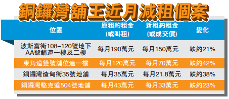 【香港商報訊】記者鄭達偉報道:本港零售業不景氣,拖累部分核心地區的舖租表現,其中更有昔日「舖王」,租金按年大跌約45%,反映過往本港街舖「牛市」已不復存在。
