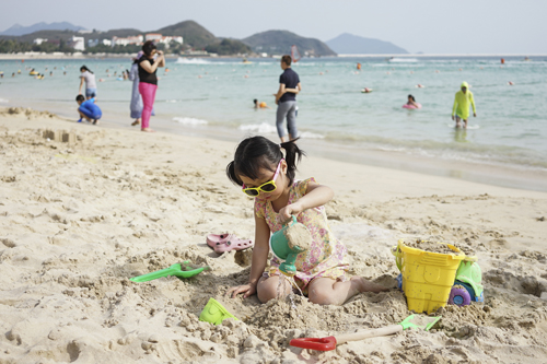游客在海南三亚大东海海滩上游玩。 中新社图片 熊然 摄