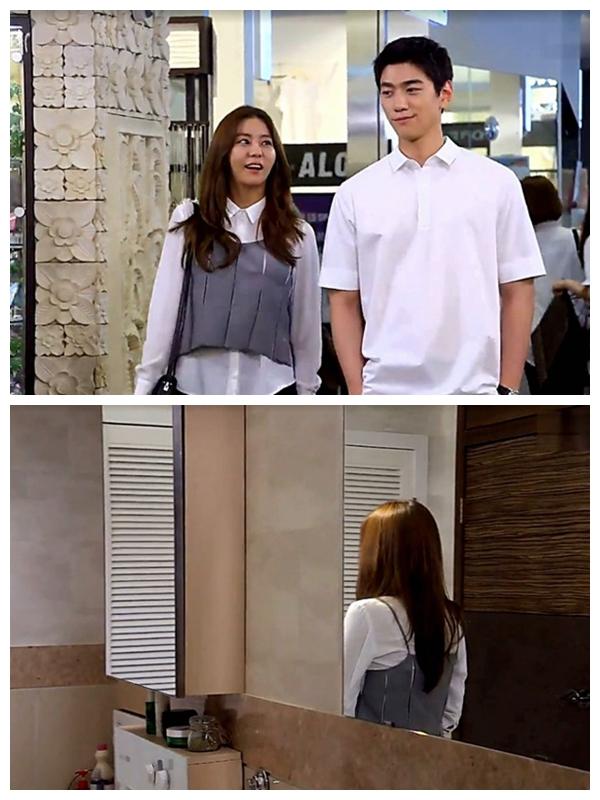 同样在韩剧《上流社会》里,扮演富家小姐的UIE也秉承着时髦星人的优良传统,把灰色吊带穿在白色衬衫外面。