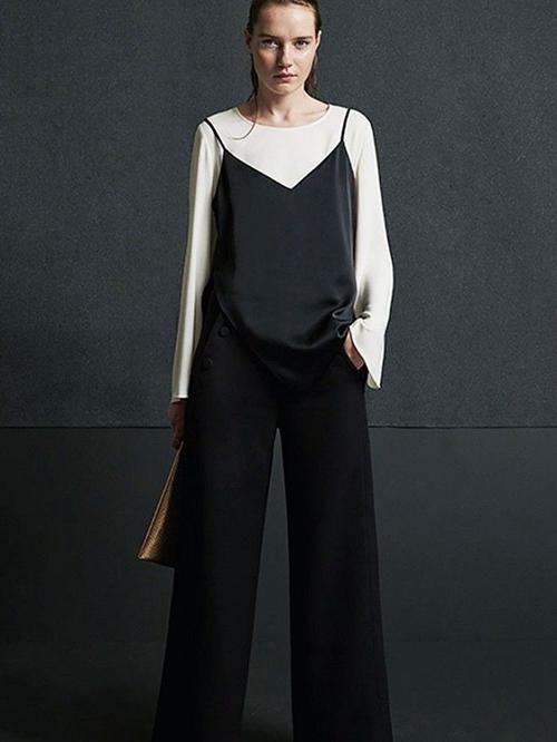 吊带叠穿法已经流行有一阵子了,还没学会的你,赶紧get起来! 【搭配Tips】 Tips1:颜色要有区别 打底衫一般选择白色的,吊带裙选择深色的,这样色差比较大的搭配,显层次! Tips2:材质要有区别 内穿的T恤和衬衫,外穿的背心选择质地选择质地轻盈又透气的,让视线能够落在的轻盈的背心上,显瘦! Tips3:选择宽松的背心 千万不要穿紧身的背心,那样不显身材不说,反而臃肿。 Tips4:大深V更时髦 通常都在疑惑这种大深V的吊带该怎么穿,现在可以里面搭配起一件衬衫or打底衫了。 【达人展示】