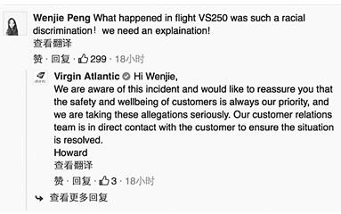 昨日,维珍公司上海分公司的工作人员告诉北青报记者,他们已经了解到了这起事件,他们一直和涉事的中国女子保持沟通,并正在展开调查。调查结果确认后会第一时间公开。
