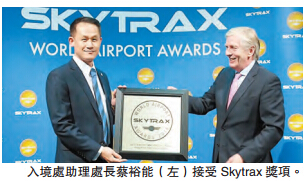 【香港商报网讯】本港入境事务处於英国专业航空运输研究机构Skytrax的年度旅客意见调查中,连续两年赢得Skytrax全球最佳机场出入境服务大奖,颁奖典礼前日在德国科隆举行。