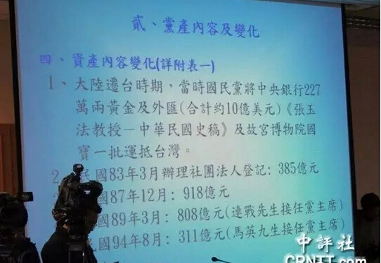 不過國民黨趁錢倒是確有其事。紅樓夢中的賈府尚且“百足之蟲死而不僵”,何況國民黨這個“百年老店”。中國國民黨數次進行“黨產大公開”,每次數據都不一樣。但總起來看,是王小二過年,一年不如一年多。