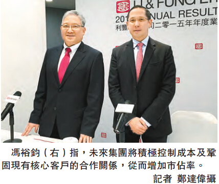 【香港商報訊】記者鄭達偉報道:受環境經濟表現疲弱及貨幣貶值影響,利豐(494)去年全年收益按年錄得逾2%跌幅。集團行政總裁馮裕鈞在公司業績會上表示,預期今年環球經濟依然挑戰重重,包括消費疲弱及通縮壓力將會持續,故集團會更積極控制成本,以及專注現有的核心客戶,鞏固彼此長期緊密的合作關系,從而增加市場占有率。