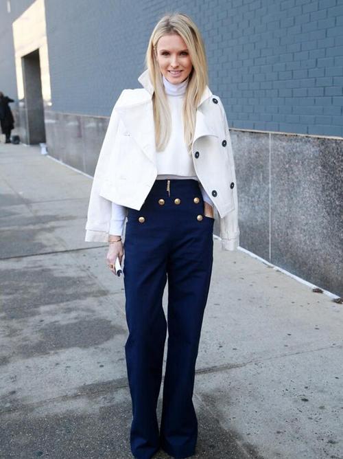高腰裤流行于60-70年代,那时候无论是裙装还是裤装,都喜欢高腰剪裁设计,并且在穿着时,那紧紧束在腰间的款腰带,也成为了标志性的特点,这样穿出来的效果,不仅双腿高挑纤长,并且突显出富有曲线美的腰部轮廓,可谓一举两得!