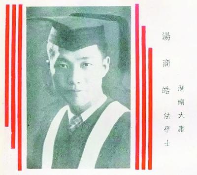 1930年,18岁的湖南大庸县(现张家界永定区)人汤商皓考上了刚刚建校的国立武汉大学,此时在首任校长王世杰的领导下,武大高薪聘请一批名师来校任教,并投巨资修建校舍。1934年,汤商皓才从原武昌中山大学的东厂口校区搬入珞珈山新校区。当年,他在武大毕业后,获得法学学士学位,被推荐到南京国民政府司法部门工作,随后被公费送往日本留学。