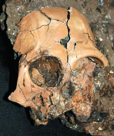 昭通古猿头骨出土状态。杨馨摄