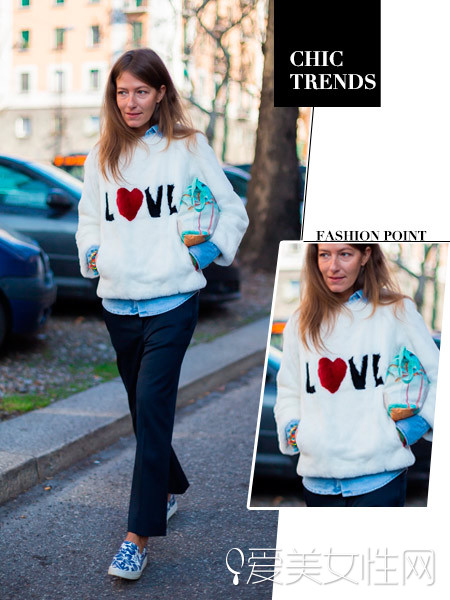 今年还比较流行这种毛绒绒的衣服,不仅保暖,还显得非常可爱哦,西装裤的搭配让你更显干练,平底鞋随意舒适!