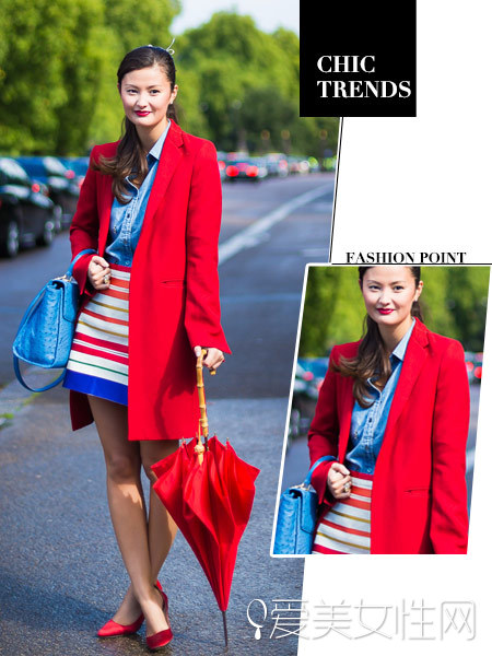牛仔衬衫+皮衣 机车装让你型到爆 皮衣搭配展现机车范,红色丝巾呼应红唇,让你现出女人味,白色裤子打破强势,让你清爽了许多! 牛仔衬衫+大衣短裙 牛仔也能极温柔