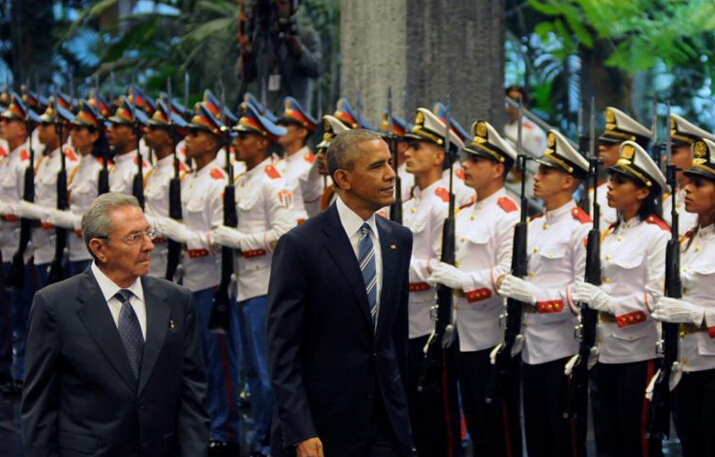 奧巴馬當天在古巴革命宮與勞爾·卡斯特羅會晤,二人面對鏡頭微笑握手,會後共見記者。奧巴馬表示,半個多世紀以來,美國總統訪問古巴的場景簡直“無法想象”,但今天是“新的一天”,兩國正在“向前努力”而非“向後看”,美國不把古巴視為對自身的威脅,美古關系開啟新篇章,他強調古巴的命運不由美國或其他任何國家決定,古巴的未來將由古巴人民決定。