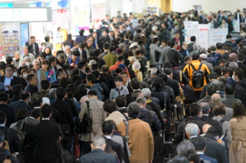 日本机场的大批滞留旅客。