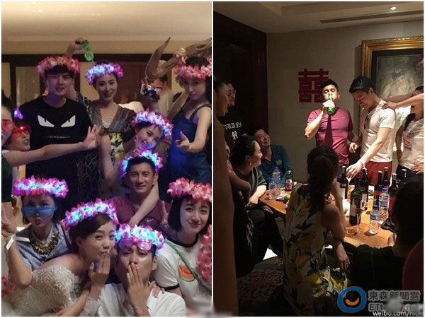 在照片中可以看到,吴奇隆用双手捧著礼物,向刘诗诗下跪,还装作一副很怕妻子的模样,难得看到“四爷”如此卑微的画面,现场友人纷纷举起相机和手机记录这一刻,他也玩得相当尽兴,在好友佟大为的逼酒下,一度拿起啤酒大口地喝,喝到连腮帮子都鼓了起来,展现豪迈大方的性格,“十三爷”袁弘更在凌晨贴出众人头戴花圈的照片,并留言“完美的一天”,看来一群人是玩了通宵。