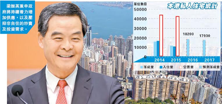 【香港商報網訊】記者鄭達偉報道:差餉物業估價署上周公布,香港今明兩年私人住宅單位的預測落成量分別達到18200伙及17930伙。雖私樓落成量較去年大幅增加,惟行政長官梁振英昨日重申,政府將持續壓抑非自住的炒賣及投資需求,并強調現階段無「減辣」計劃。