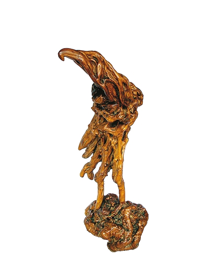 根雕,取材于树木砍伐之后遗留下来的根部。从直观上看,树根丑俗不雅,盘根错节,疤瘤节结,虫蛀洞孔,蟠虬残缺,令人不屑。可是一旦遇慧眼有识和灵犀相通者,就会创造出佳品。正是这种由丑到美的奇妙变化,激发了艺术家的创作灵感。一件件根艺作品或成山水风景,或成花鸟鱼虫,或成历史人物,具有妙趣天成的艺术感染力。