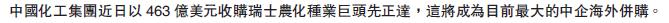 雖然安邦此番大手筆收購能否成功仍未可知,但其背后凸顯中資企業征戰海外的熱情高漲。事實上,今年以來,豪擲千金進行海外併購的中企并不在少數。今年2月,海航集團宣布60億美元收購美國信息技術企業英邁;2月初中國化工集團以每股465美元的現金、總價超過430億美元收購瑞士農業化學巨頭先正達(Syngenta)100%股權。