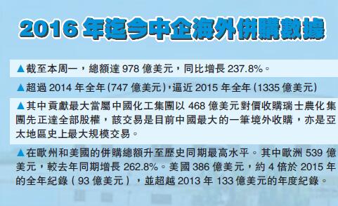 與此同時,中企頻頻激進併購,特別是采用高杠桿資金來源,令到此類交易風險放大。并且,中企海外併購,仍受制於內地對跨境資本流動的監管和限制,海外拓展之路遠非一帆風順。香港商報記者 朱輝豪