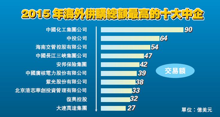 2016年開年以來,中國企業在全球掀起了新一輪併購熱潮,一些中企動輒以幾十億、上百億美元的資金收購國外行業巨頭,如此大手筆引發了外界強烈關注。業內人士認為,產業升級和結構轉型的迫切需求是中企海外拓展的主因,而中國資本市場的震盪和傳統產業產能過剩等問題,也加速了企業海外併購的步伐。隨著中國經濟在全球發揮著越來越重要的作用,歐美市場對中國企業與中國資本的認同度遠超昔日,使得目前併購顯得非常活躍。