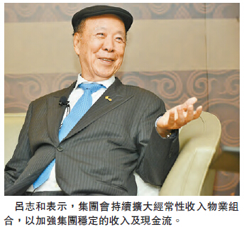 展望未來,呂志和表示,集團仍會持續擴大經常性收入物業組合,包括目標在未來兩年把樓面面積由13萬增至20萬平方米,同時積極物色優質土地,以加強集團穩定的收入及現金流。