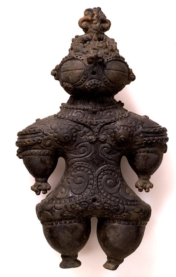 还有这幅《鸟兽人物戏画断简》,是平安时代(12世纪)的纸本水墨作品,将青蛙和猴子拟人化地表现,是一种幽默的表现方式,这也算日本漫画的一个开端。前些日子我们举办了这件作品的一个临展,当时为了看这幅很长的画卷,观众排队长达5个小时。还有《纳凉图》,江户时代(17世纪)作品,描绘的是一家人在葫芦藤下纳凉赏月的场景。《遮光器土偶》也是一件非常具有人气的展品,距今约三四千年前,有人觉得它的造型像外星人,其原型甚至入过日本的漫画,风靡一时。