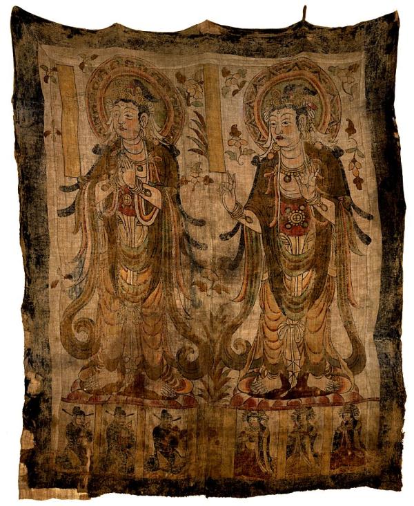 二菩萨立像幡敦煌莫高窟藏经洞出土五代~北宋时代