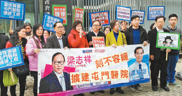 【香港商報網訊】記者王珈莉報道:屯門醫院啟用已逾20年,部分設施出現老化情况,隨着屯門及元朗區人口急劇增加,屯門醫院服務不敷應用,醫管局早前計劃擴建屯門醫院,然而議案仍待立法會財委會通過撥款。民建聯立法會議員梁志祥昨日聯同多名區議員及市民到政總外請願,抗議泛民議員拉布,令有關撥款遙遙無期。