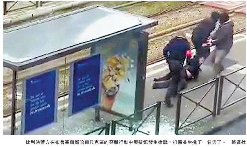 据比国媒体称,警方25日在布鲁塞尔斯哈尔贝克区的突击行动中与疑犯发生枪战,打伤并拘捕了一名男子。比国警方在近日的连串行动中,已先後在布鲁塞尔市中心及市郊区拘捕9人。此外,德国警方也逮捕了可能涉及布鲁塞尔恐袭的2名嫌犯,一人的手机存有在恐袭发生时发出的可疑信息,另一人与布鲁塞尔自杀式炸弹手有联系。