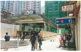 西营盘站共设有6个出入口,去年底启用后只开放其中5个,余下的奇灵里B3出入口,因地质问题影响工程进度,延至昨早才正式启用。市民从港铁大堂走到B3出口,需时约9分钟,出入口虽已启用,但设施未完全准备妥当,如升降机仍贴出告示指正在安装,出入只可使用扶手电梯,职员指升降机要到今年7至8月才可使用,另有多块指示方向的显示屏亦未开启。