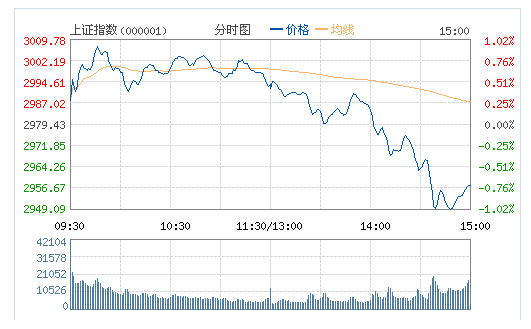 周一早盤兩市震蕩高走,滬指再次沖擊3000點,午后股指回落小幅跳水,券商保險等砸盤,熱點逐步熄火。截至收盤,滬指跌0.73%報2957.82點,深成指跌0.61%報10276.84點。
