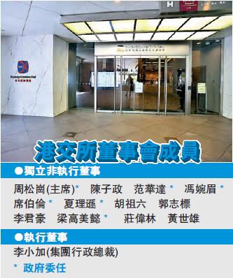 港交所董事局人数共13人,港交所总裁是当然董事,其他12人一半由政府委任,一半由股东选任(但每年最多有两名到期退任)。根据「12年上限」新规定,两大港交所元老李君豪及郭志标,在2017年股东大会将不能寻求连任董事。