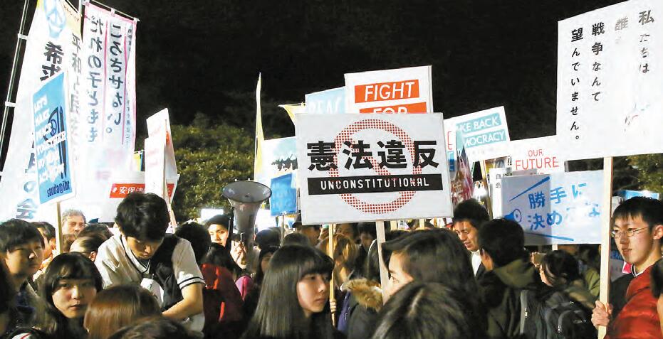 更有分析稱,新安保法是「披著和平外衣的戰爭法案」。許多日本人擔憂,日本一旦放棄和平憲法的堅持,70年來的和平與繁榮都會隨之動搖。甚至有反對者稱,隨著系列安保法案的通過,日本的和平憲法已經真正「死亡」。